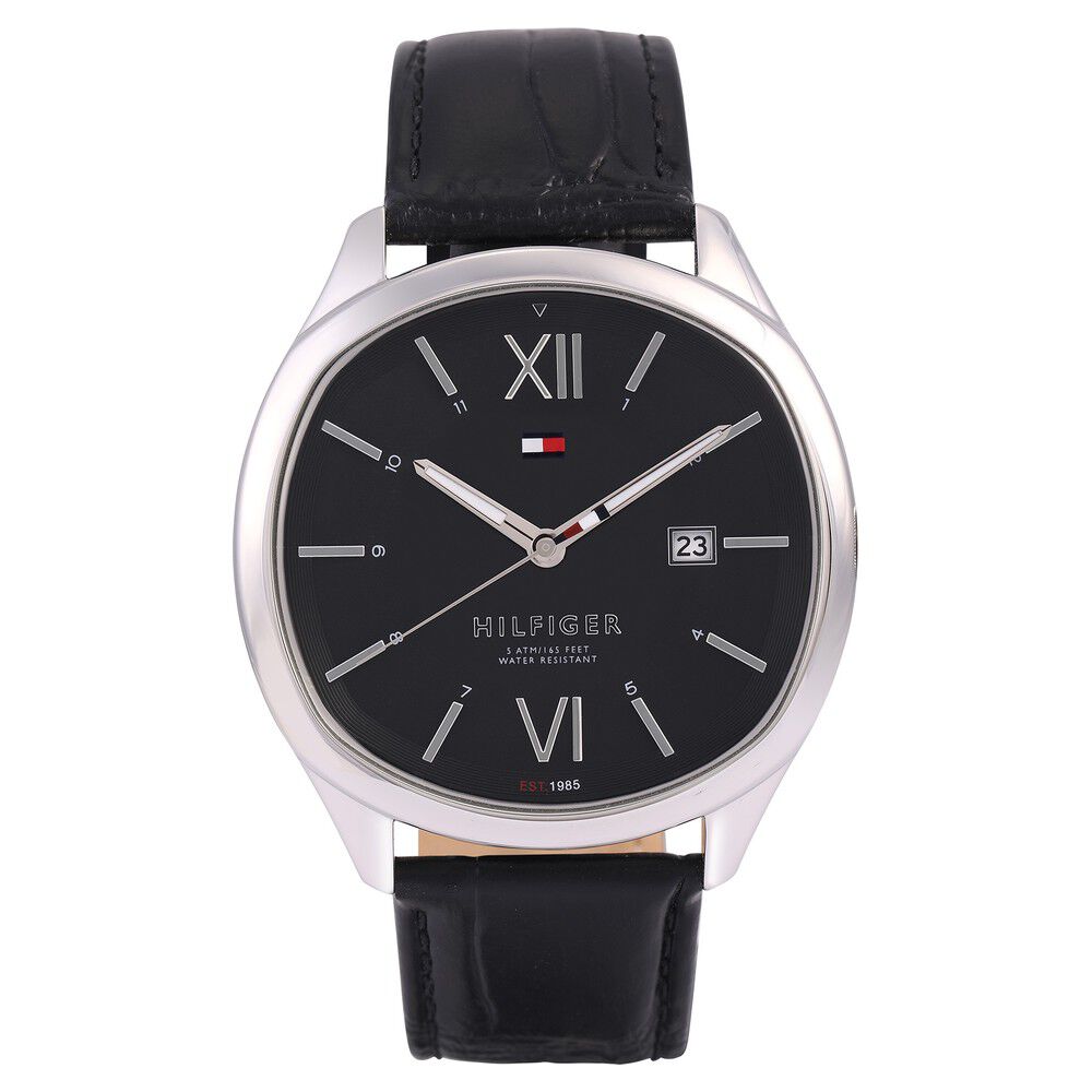 Tommy Hilfiger Quartz Analog with Day and Date Black Dial Leather Strap Watch for Men-NCTH1710365