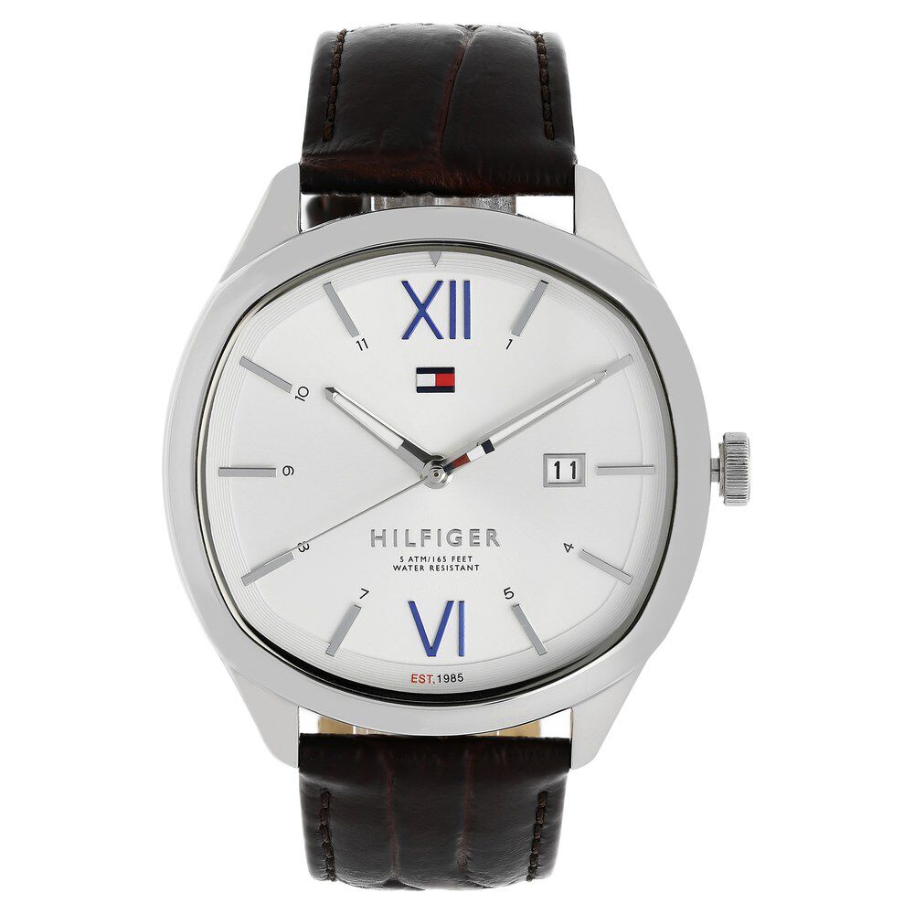 Tommy Hilfiger Quartz Analog with Day and Date White Dial Leather Strap Watch for Men-NCTH1710364