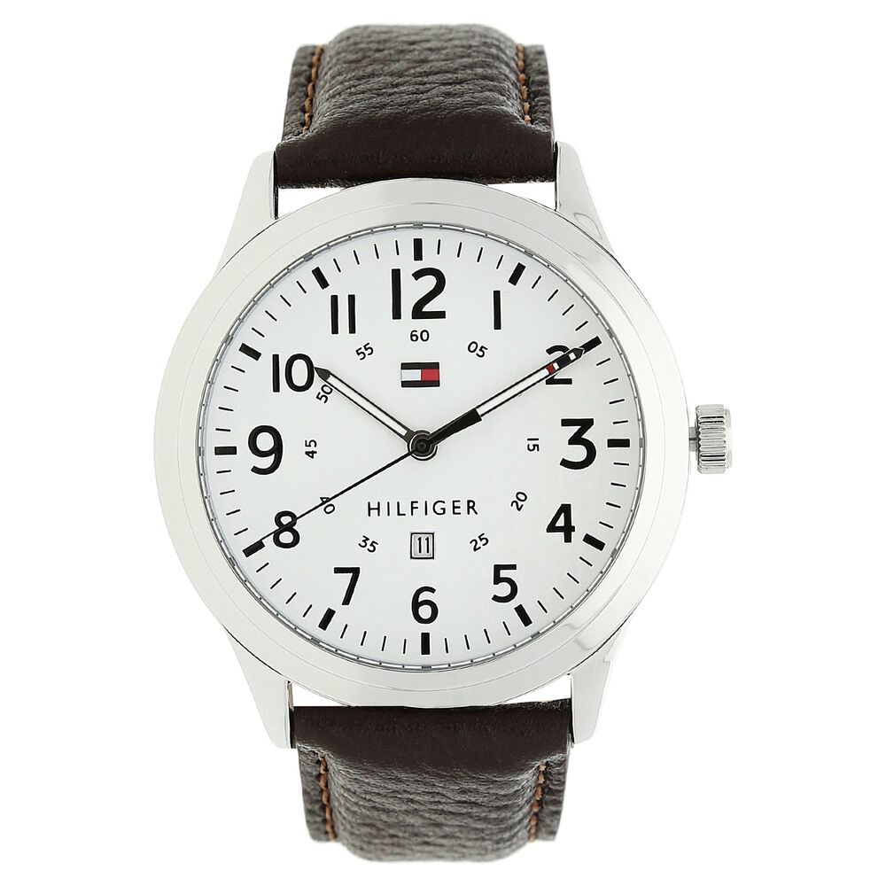 Tommy Hilfiger Quartz Analog with Day and Date White Dial Leather Strap Watch for Men-TH1791259W