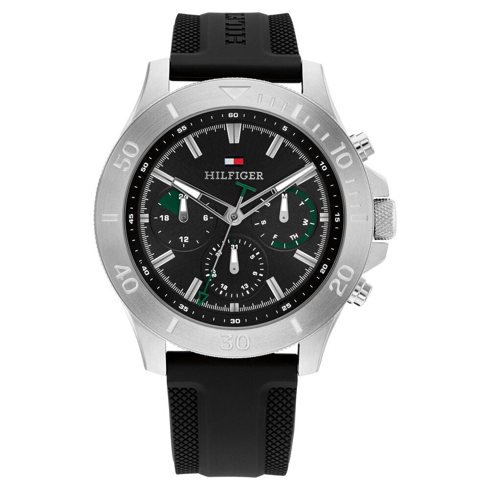 Tommy Hilfiger Quartz Multifunction Black Dial Black Silicone Strap Watch for Men-NTTH1792111