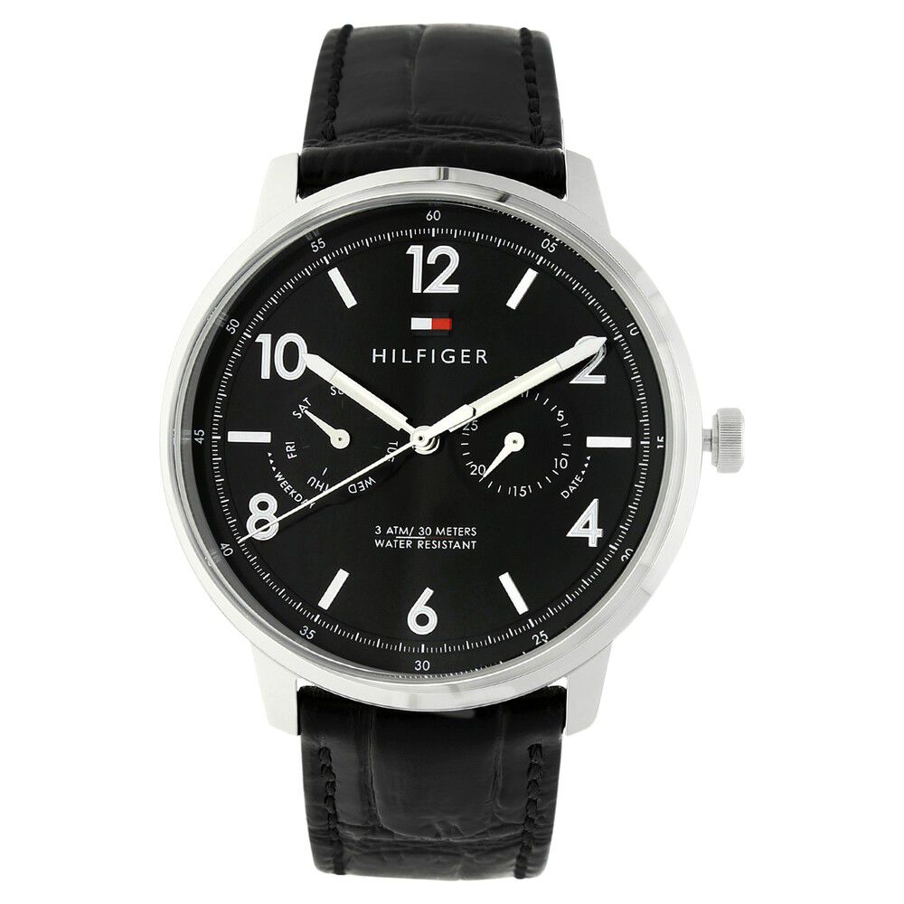 Tommy Hilfiger Quartz Multifunction Black Dial Leather Strap Watch for Men-NCTH1791356W