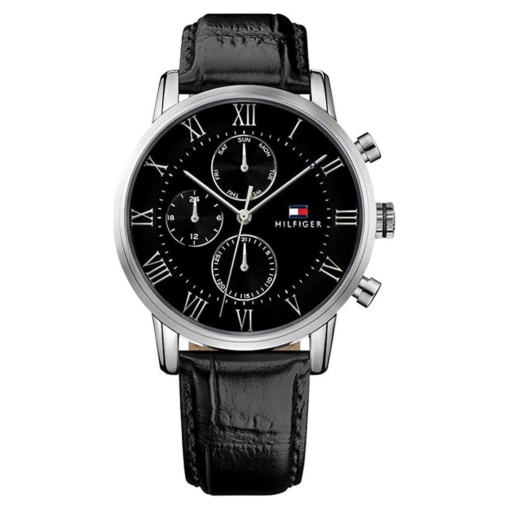 Tommy Hilfiger Quartz Multifunction Black Dial Leather Strap Watch for Men-NCTH1791401W