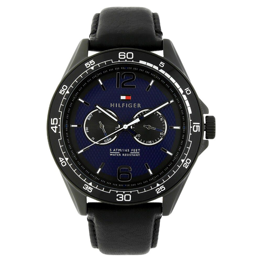 Tommy Hilfiger Quartz Multifunction Blue Dial Leather Strap Watch for Men-NCTH1791368