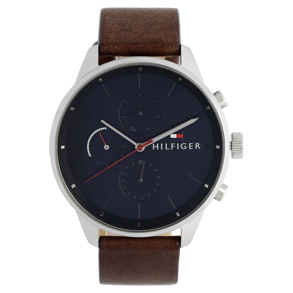 Tommy Hilfiger Quartz Multifunction Blue Dial Leather Strap Watch for Men-NCTH1791487W