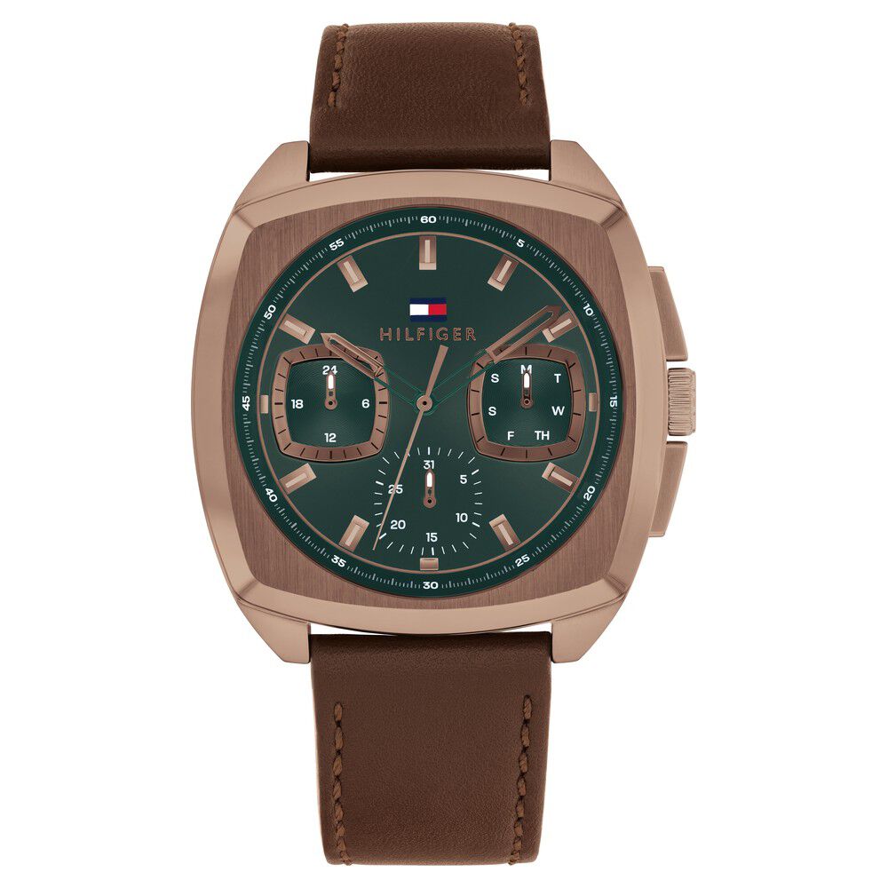 Tommy Hilfiger Quartz Multifunction Green Dial Brown Leather Strap Watch for Men TH1710557W