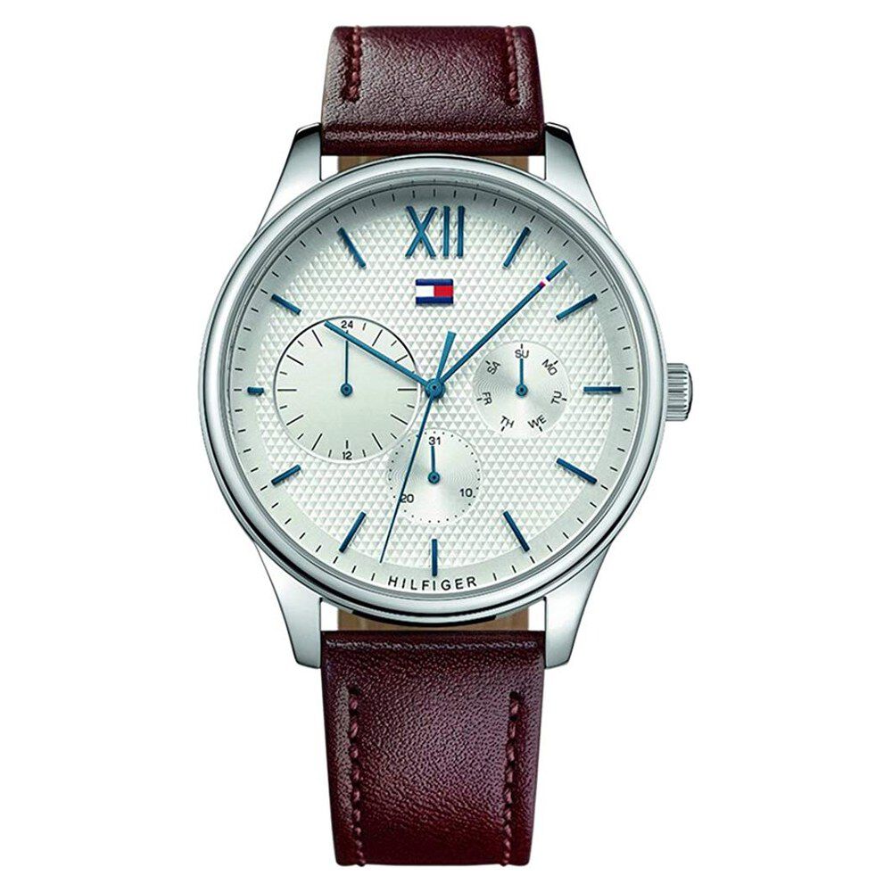 Tommy Hilfiger Quartz Multifunction Silver Dial Leather Strap Watch for Men-NCTH1791418W