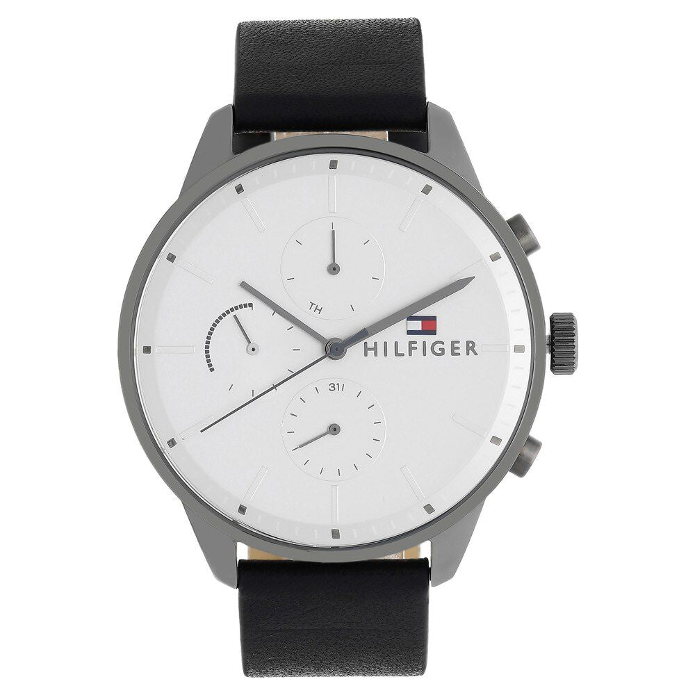 Tommy Hilfiger Quartz Multifunction Silver Dial Leather Strap Watch for Men-NCTH1791489