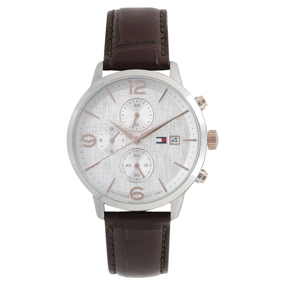 Tommy Hilfiger Quartz Multifunction Silver Dial Leather Strap Watch for Men-NTH1710360