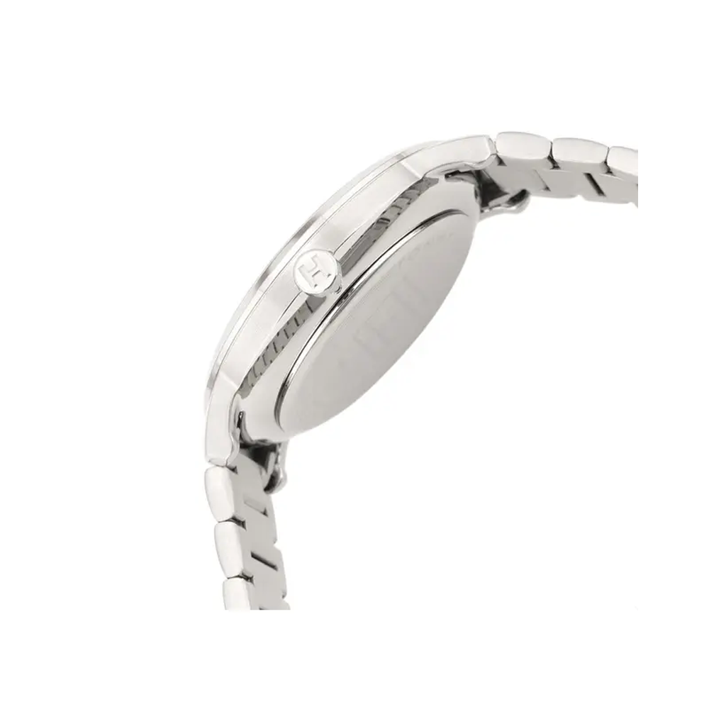 A must-have timepiece for all the watch aficionados, this men's analog watch from the Hunter collection by Tommy Hilfiger will be a perfect pick. Its stainless steel strap vaunts an elegant silver hue that enhances the look of the watch. Housed in a 44 mm case, the grey round dial...