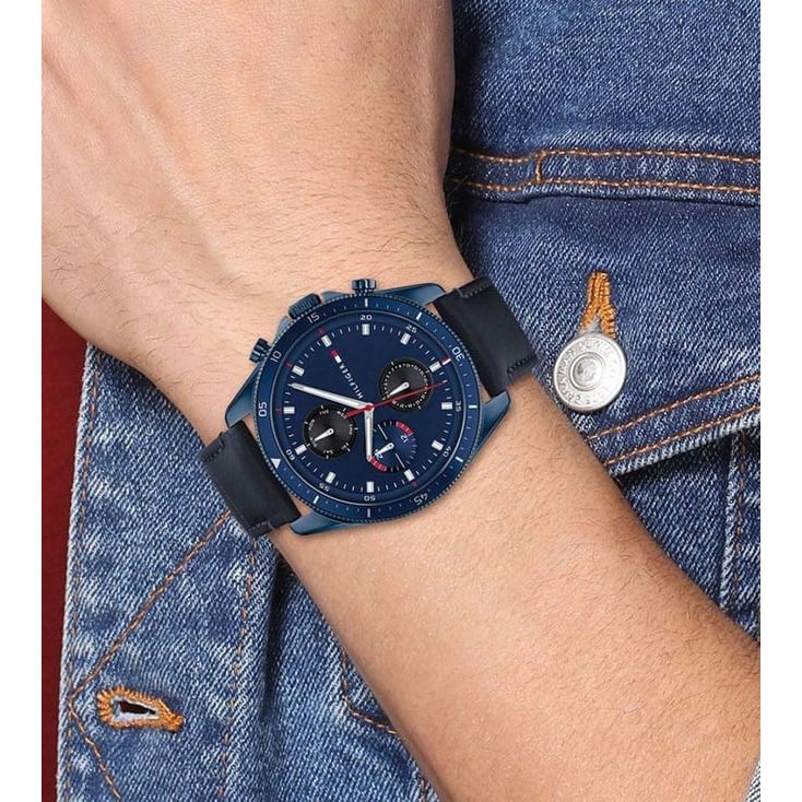 Get hold of this stylish analog watch from the Parker collection by Tommy Hilfiger and enhance your timepiece collection. Functional on a quartz movement and protected by a mineral glass, the round dial is housed in a 44 mm case. It displays multifunction functionality and a crown for time adjustment....
