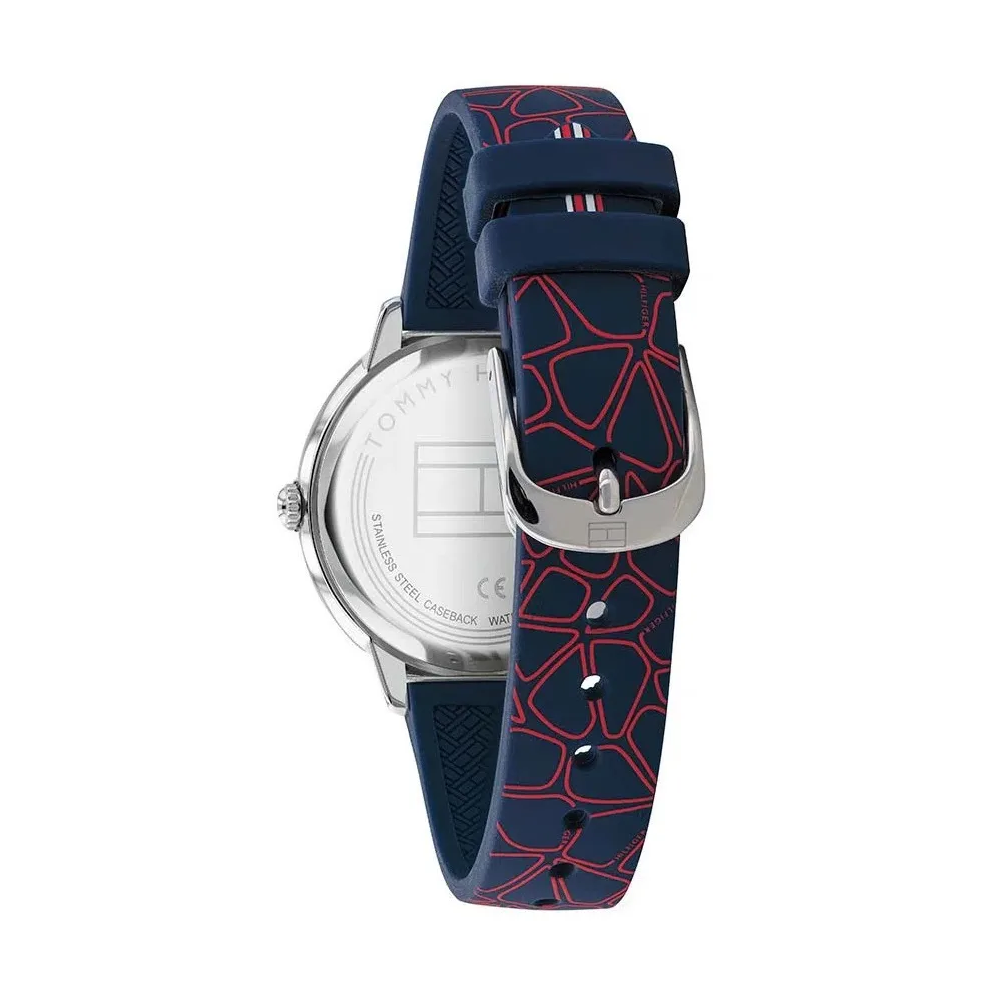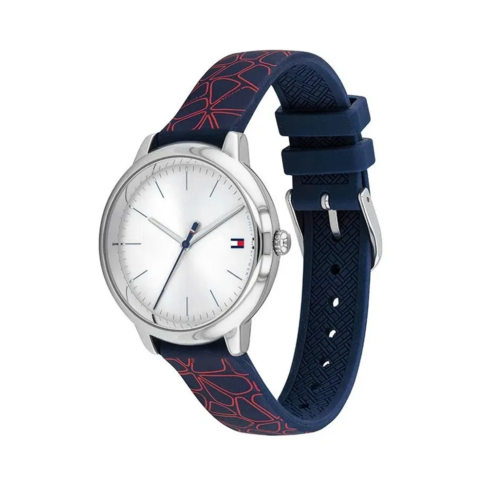 Tommy Hilfiger Woman Watch (1782252) feminine and modern, with a 35mm steel case and a blue silicone strap with a delicate floral design.